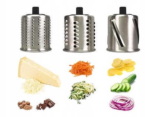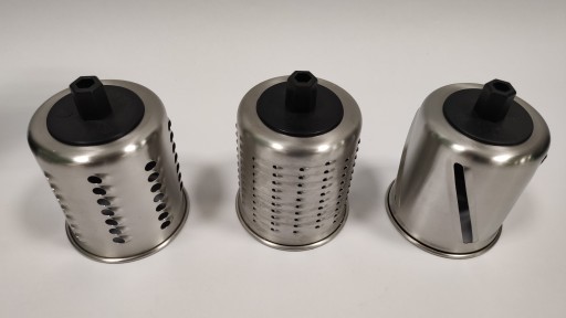- 3 stożki w zestawie: tarka jest wyposażona w 3 stalowe stożki do tarcia, cięcia i cięcia julienne