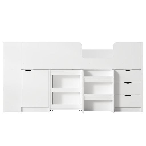 Łóżko piętrowe dla dzieci, wielofunkcyjne łóżko dziecięce, z drabinką, z wysuwanym biurkiem, z wyjmowaną szafką, z szufladą, z dużą szafką, bez materaca, MDF, białe 90*200