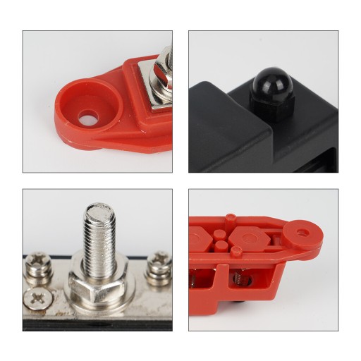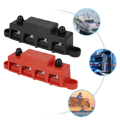 ⏩⏩Elastyczne i praktyczne: 4-słupkowe zaciski 3/8 cala bloku rozdzielczego szyn zbiorczych prądu stałego umożliwiają łatwe i bezpieczne podłączanie przewodów oraz zapewniają elastyczność podczas podłączania wielu urządzeń lub komponentów elektrycznych.