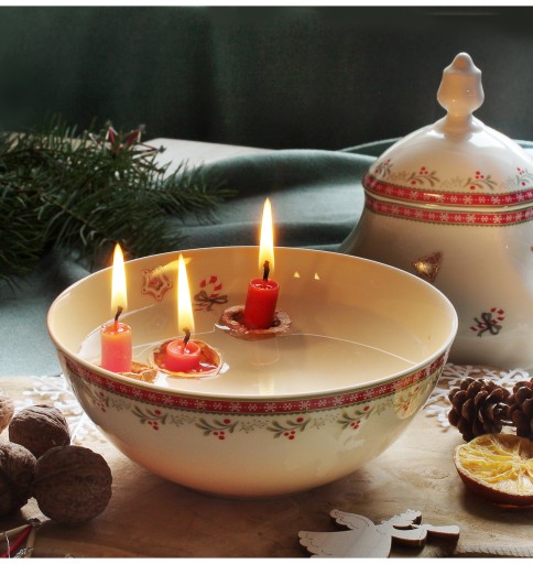 Pięknej świątecznej miski z pewnością nie może zabraknąć w domu. Wszechstronna porcelanowa miska w kolorze kości słoniowej nadaje się na musli, sałatkę lub dużą porcję zupy. Jest ozdobiona tradycyjnymi świątecznymi motywami i kolorami, dzięki czemu doskonale przywoła odpowiednią świąteczną atmosferę. Nie musisz używać jej tylko do jedzenia, będzie również świetnie wyglądać jako dekoracja stołu.