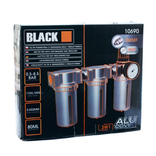 FILTR ODWADNIACZ, ODOLEJACZ, REDUKTOR POWIETRZA, SEPARATOR ZŁĄCZ KOMPRESORA 1/2 POTRÓJNY od marki Black to niezawodne urządzenie, które sprawdzi się w wielu profesjonalnych zastosowaniach. Dzięki zaawansowanej technologii, którą wykorzystuje, zapewnia użytkownikom najwyższą jakość doprowadzanego powietrza oraz skuteczną ochronę układów pneumatycznych.