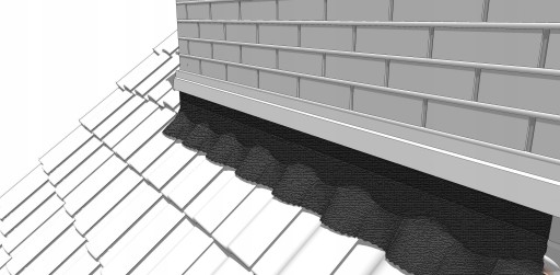 - Wyprofilować elementy boczne, piersiowe i tylne. Taśmę należy przykleić tylko do dachówki, nie wolno jej mocować do komina.