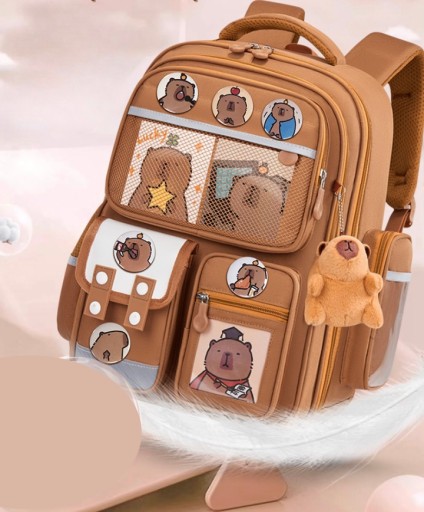 ZESTAW: PLECAK SZKOLNY + BRELOK MASKOTKA KAPIBARY + KARTY 3 SZTUKI + 6 PRZYPINEK