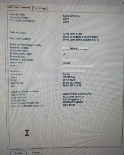 Odczyty oraz sprawdzenie wykonałem osobiście i zostało sprawdzone w programie którego używają Inspekcję Transportu w całej Europie.