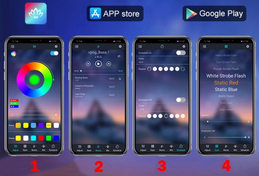 Funkcja synchronizacji z muzyką pozwala na tworzenie niezapomnianych świecących spektakli w rytm muzyki. Teraz możesz dosłownie zanurzyć się w dźwiękach i światle, podnosząc poziom rozrywki i relaksu.
