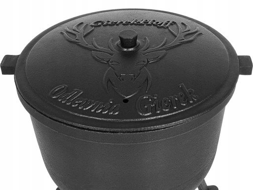 - Kociołek został wykonany z wysokiej jakości żeliwa przez Odlewnię Gierek z długotrwałą tradycją,