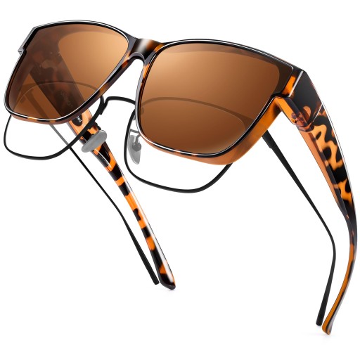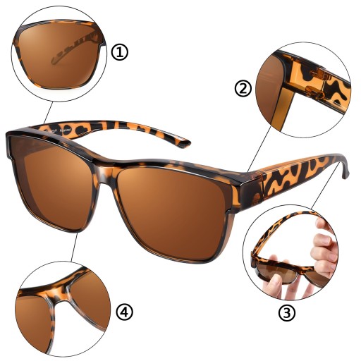 OCHRONA HD POLARYZACYJNA UV400: Ciemne soczewki antyrefleksyjne są specjalnie pokryte powłoką polaryzacyjną, aby zapewnić ochronę UV400, redukując odblaski odbite od dróg, zbiorników wodnych, śniegu i innych poziomych powierzchni. Zmniejsza zmęczenie oczu w warunkach jasnego oświetlenia, dzięki czemu są idealnymi okularami przeciwsłonecznymi zakładanymi na okulary dla kierowców i miłośników sportu.