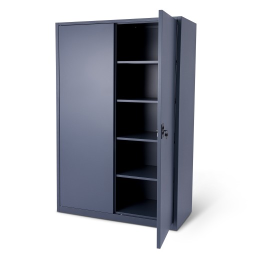 Szafa wyposażona jest w 4 stabilne półki. Każda półka może być obciążona ciężarem do 50 kg ( przy równomiernym rozłożeniu obciążenia ). Solidna i stabilna konstrukcja szafy w połączeniu z wysokiej jakości 3 punktowym zamkiem zapewniają ochronę przed dostępem nieuprawnionych osób.