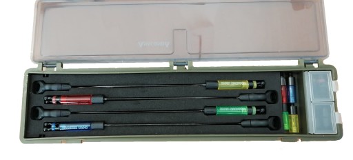 Ten sygnalizator brań został stworzony do natychmiastowego rozpoznawania ostrożnych, delikatnych brań. Dostarczany w stabilnym pudełku transportowym ze wzmacnianego tworzywa sztucznego w wielu kolorach. W zestawie znajdują się wymienne główki i po jednym dodatkowym ciężarku o wadze 5 gramów, które można przykręcić do gwinta. Prawdziwy must have dla każdego nowoczesnego wędkarza.