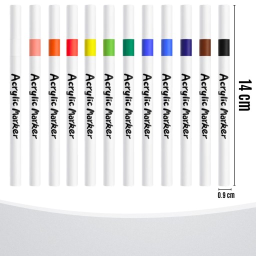 PISAKI AKRYLOWE DO RÓŻNYCH POWIERZCHNI – ZESTAW 12 KOLORÓW