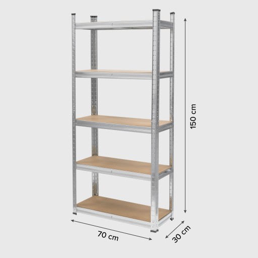 Regał magazynowy metalowy 150x70x30 garażowy srebrny 5 półek Rebel