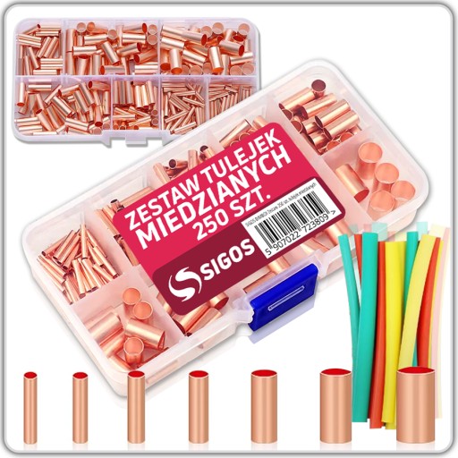 Zestaw marki SIGOS ® - Zestaw 250 Tuleje Miedziane do Łączenia Przewodów - 7 Rozmiarów