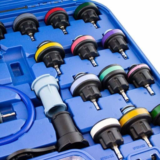 Profesjonalny miernik szczelności układu chłodnicy oraz nagrzewnic dla samochód osobowych, dostawczych i ciężarowych. Termometr w zestawie pozwala na sprawdzenie prawidłowego działania termostatu. Urządzenie do dokonania szybkiego napełnienia chłodziwa poprzez wywierane podciśnienie, po wcześniejszym opróżnieniu chłodnicy. Idealne narzędzie niezbędne w każdym warsztacie do szybkiego i czystego serwisu układu chłodzenia.