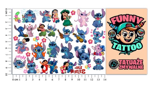 TATUAŻE DLA DZIECI ZMYWALNE TYMCZASOWE STITCH WZORY JAKOŚĆ
