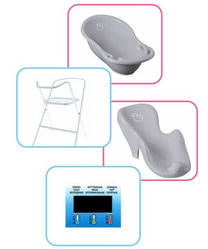 WANIENKA "4w1 ZESTAW" DLA DZIECKA TEGA BABY WANNA TERMOMETR LEŻACZEK STOJAK