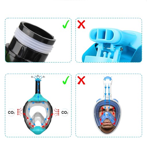 ✅ MASKA DO SNORKELINGU PEŁNOTWARZOWA Z SYSTEMEM DRYTOP I UCHWYTEM NA KAMERĘ GOPRO