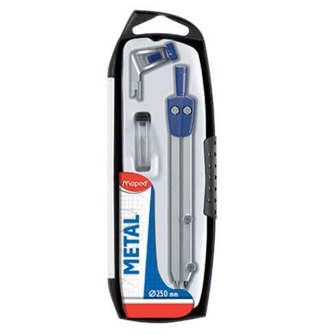 Klasyczny cyrkiel metalowy START z grafitem w zestawie trzyelementowym: cyrkiel na grafity, uniwersalny uchwyt na ołówek drewniany, zapasowy grafit 2mm. Maksymalny rozstaw ramion 250mm. Zestaw pakowany w etui.