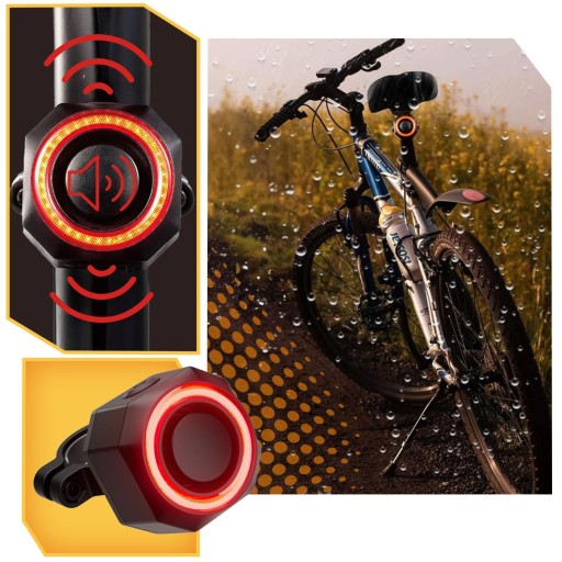 ALARM ROWEROWY ANTYKRADZIEŻOWY + LAMPA TYLNA LAMPKA ROWEROWA DZWONEK PILOT