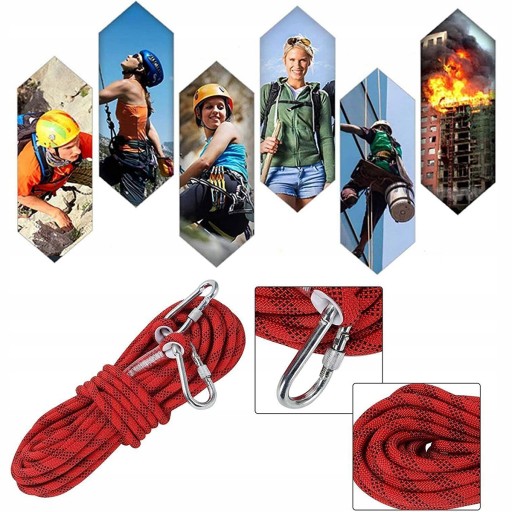 ☄️Lina wspinaczkowa 20m 12mm lina asekuracyjna czerwona z 2 karabinkami lina bezpieczeństwo obóz☄️