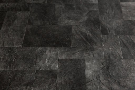 Wykładzina PCV Basic Magnusimituje podłogę z prostokątnych kamiennych lub marmurowych płytek o różnych rozmiarach i nieregularnym układzie. Kolorystyka utrzymana jest w praktycznych odcieniach antracytowej szarości z dodatkiem kontrastującego kremu. Ponadczasowy wzór i wykorzystane kolory pozwalają na łatwe dopasowanie wykładziny Basic Magnus do różnorodnych aranżacji – od rustykalnych kuchni po nowoczesne, eleganckie salony.