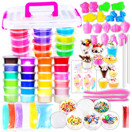 - Zawartość: 24x gotowe slime, 6x Piankolina, 7x Pudełka z dodatkami, 27x Foremki, 3x Narzędzia, 2x Słomki