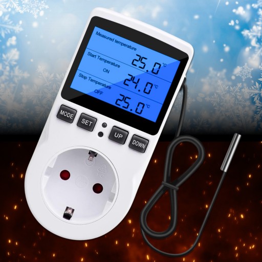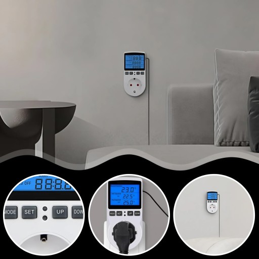 TERMOSTAT ELEKTRONICZNY REGULATOR TEMPERATURY GNIAZDO SIECI 230V max. 3680W