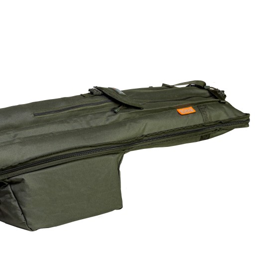Pokrowiec wykonany z bardzo dobrej jakości materiału Duranylon 600D i podszyty miękką pianką, gwarantuje pełne bezpieczeństwo wędkom podczas transportu. Dodatkowe zabezpieczenie dla zestawów stanowi możliwość ich przywiązania. Wewnątrz pokrowca znajdują się także kieszonki do ochrony szczytówek/blanków/rękojeści, które zapewniają większą stabilność dla wędzisk w czasie ich przenoszenia.