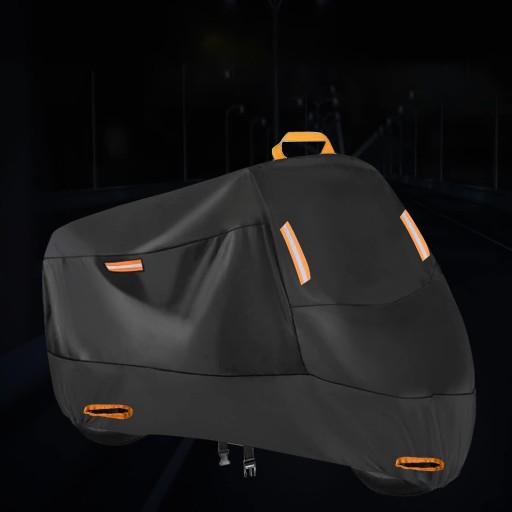 - 🏍️【4 PASKI ODBLASKOWE I UCHWYT TAŚMY】: Ta plandeka motocyklowa ma 4 dobrze widoczne paski odblaskowe, 2 z przodu i 2 z tyłu. Ułatwia odnalezienie roweru i wyróżnienie się w ciemności. I jest wyposażony w uchwyt z taśmy na górze.