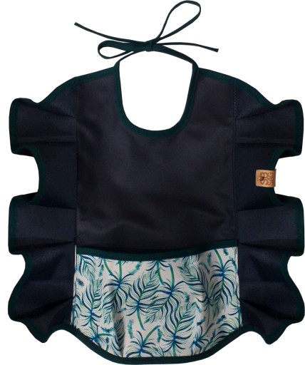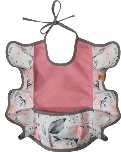 Falbanki w śliniaku mają nie tylko walor estetyczny! One bez ograniczania ruchu zabezpieczają przed pobrudzeniem odzieży i kierują spadające resztki posiłku wprost do kieszonki.