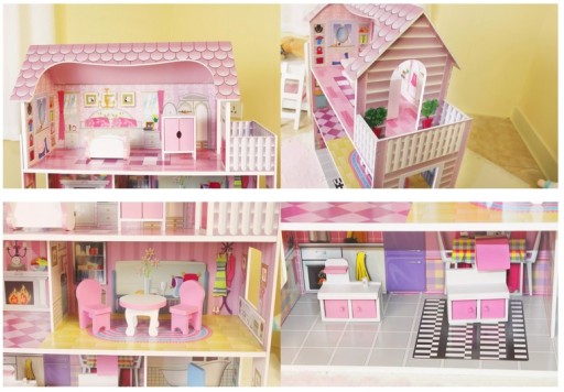 Piękny 3-piętrowy drewniany domek dla lalek z mebelkami i tarasem został wykonana z dużą dbałością o każdy detal. Posiada 5 dużych i przestrzennych pokoi oraz wyjście na taras. Drewniane mebelki i akcesoria są ruchome i można je przestawiać w dowolne miejsca w zależności od wyobraźni dziecka. Domek posiada trzy niezależne poziomy, na których znajduje się łącznie 5 pomieszczeń + taras, a każde z nich utrzymane jest w innej stylistyce (sypialnia, jadalnia,kuchnia, łazienka, salon). Z pewnością sprawi radość Twojemu dziecku i zapewni długie godziny świetnej zabawy. Domek jest całkowicie bezpieczny i stabilny. Idealnie pasuje do każdego wnętrza.