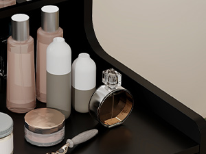 Wyposażony w wygodny stołek do makijażu, powierzchnia wykonana jest z materiału PU, nogi stołka wykonane są ze stalowej ramy, mocnej i trwałej. Nośność może osiągnąć 100kg.