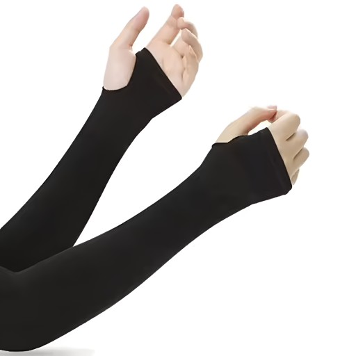 Czarne chłodzące rękawy na ręce to idealne rozwiązanie na upalne dni. Wykonane z oddychającego, elastycznego materiału zapewniają komfort oraz ochronę przed promieniowaniem UV. Dzięki otworom na kciuki stabilnie utrzymują się na miejscu i chronią całe przedramię. Materiał szybko schnie i skutecznie odprowadza wilgoć, co sprawia, że rękawy są doskonałe do uprawiania sportu i codziennego użytku. Uniwersalny rozmiar sprawia, że pasują zarówno dla kobiet, jak i mężczyzn. W zestawie znajdują się 2 sztuki – komplet na obie ręce.
