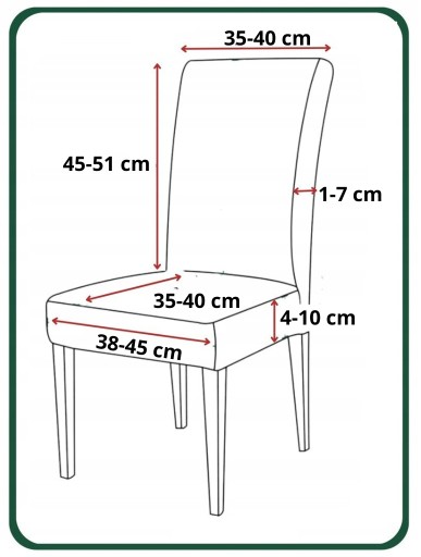 Na grafice obok znajdują się wymiary krzeseł na jakie pasuje nasz pokrowiec. Jeśli masz +- 2 cm większe/mniejsze krzesło - nasz pokrowiec nadal będzie pasował!