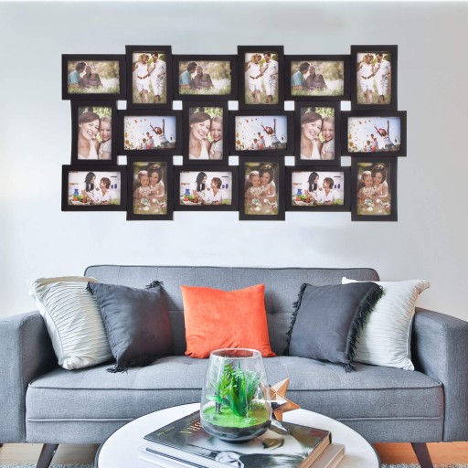 Ramka na zdjęcia firmy Springos® doskonale uzupełni wnętrze. Świetnie będzie wyglądać zarówno w już istniejących jak i dopiero tworzących się aranżacjach. Multiramka pomieści aż 18 zdjęć rodziny, pięknych widoków, ulubionych motywujących cytatów oraz minimalistycznych grafik.