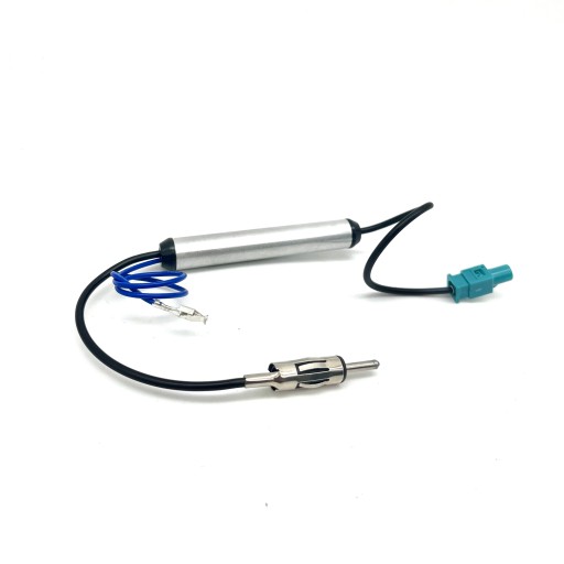 Wzmacniacz antenowy FAKRA – DIN (ACV 025) to niezbędny adapter przy wymianie fabrycznego radia na radioodtwarzacz lub stację multimedialną. Adapter zapewnia zasilanie fabrycznego wzmacniacza antenowego, wbudowanego w podstawę anteny dachowej, co jest kluczowe dla prawidłowego odbioru fal radiowych.