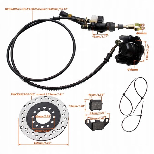 3. Pakiet zawiera: Zestaw ukadu zacisku hamulca tarczowego zawiera przewód hydrauliczny o wysokim stopniu sprężania, klocek hamulcowy i tarczę hamulcową zacisku hamulcowego.