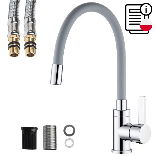 ✍️ Bateria kuchenna ☺️ Obrotowa wylewka 360`✔️ Wysokość baterii regulowana ☀️Mocna i solidna konstrukcja ✉️ Kolor: srebrno-szary ♥️ Można dowolnie wyginać ♠️ Wężyki przyłączeniowe ♣️ Silikonowy wąż ✔️ Materiał: stal i tworzywo sztuczne ♣️ System szybkiego montażu ⭐ Jednouchwytowe pokrętło ⭐
