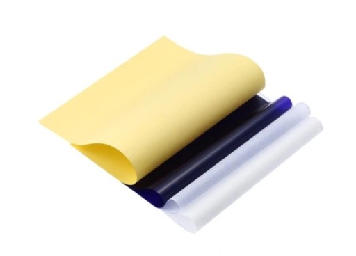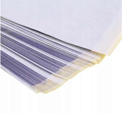 ⌛ Trzecia warstwa to niebieski papier węglowy, po naciśnięciu którego niebieska powłoka jest przenoszona na górny arkusz.