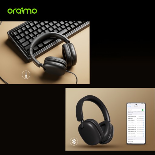 Oraimo BoomPop Lite – Bezprzewodowe słuchawki nauszne z Bluetooth 5.3, AUX i 65h pracy