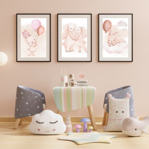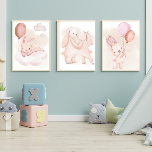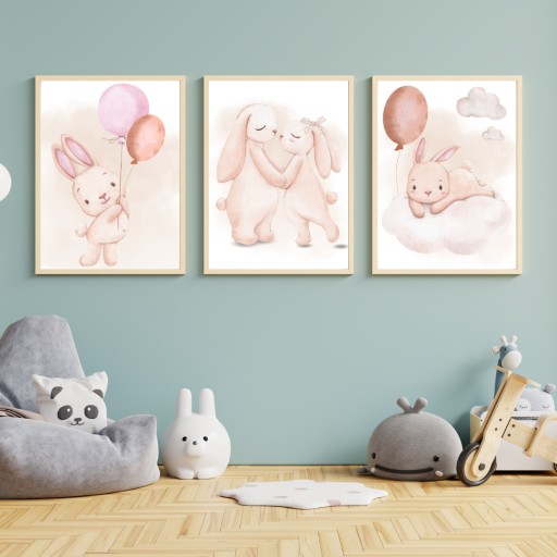 Zestaw 3 plakaty dla dzieci A3 królik balon