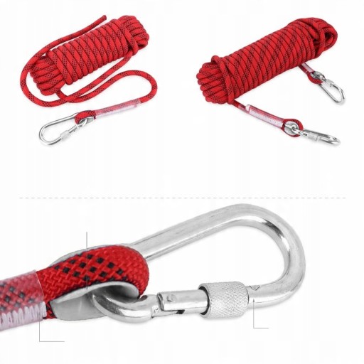 ⭐⭐⭐⭐20m 12mm Lina wspinaczkowa Lina bezpieczeństwa Czerwona z 2 karabińczykami Rope Safety Camp⭐⭐⭐⭐