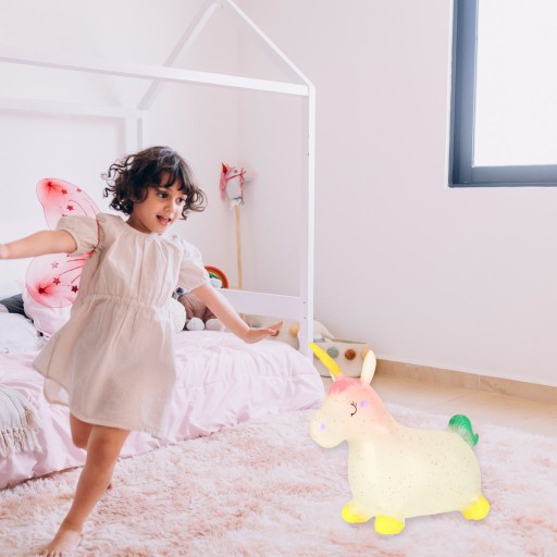 SKOCZEK JEDNOROŻEC – ZABAWA, KTÓRA RUSZA DZIECI - Ten uroczy skoczek w kształcie jednorożca to doskonała zabawka dla dzieci, które uwielbiają ruch i bajkowy świat. Wystarczy kilka podskoków, by rozbudzić wyobraźnię i poprawić koordynację ruchową. Specjalnie ukształtowana sylwetka i wygodne uchwyty w formie uszu zapewniają stabilność i bezpieczeństwo podczas skakania.