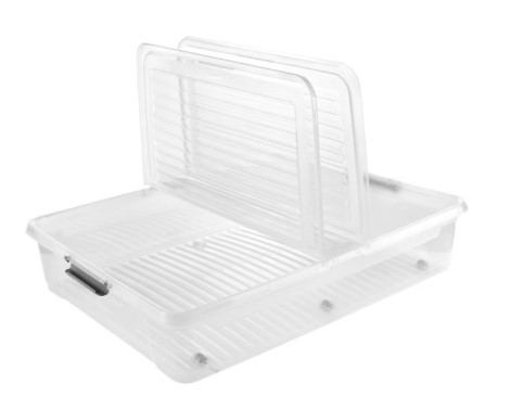 ✅ KEEEPER – Pojemnik z pokrywą pod łóżko - LEO - z kółkami i klipsami - transparentny - 53 L