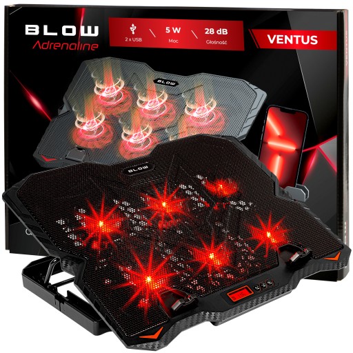 Podkładka zawiera 6 wentylatorów o średnicy 60mm każdy, które zapewniają odpowiednie chłodzenie laptopa na całej jego powierzchni. Odpowiednie chłodzenie zwiększa wydajność pracy naszego urządzenia oraz zapobiega przegrzewaniu się sprzętu. Podstawka chłodząca Blow może wpłynąć na zwiększenie żywotności sprzętu.
