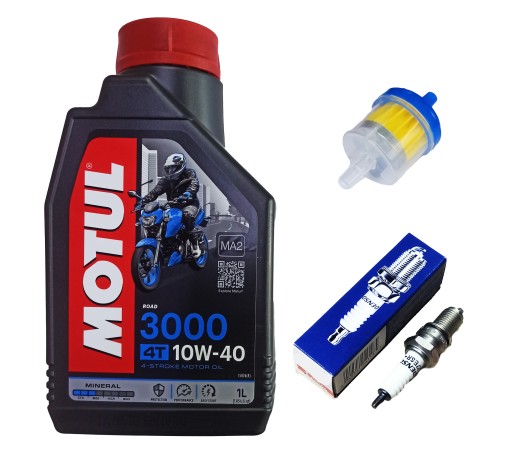 - w skład zestawu wchodzą: świeca, filtr paliwa, olej