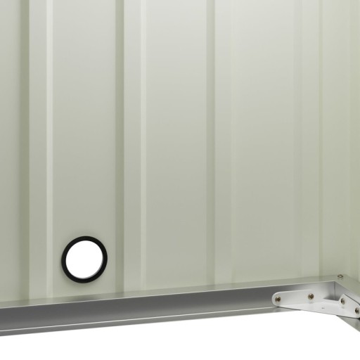 Garaż jest trwałym domem dzięki wysokiej jakości ocynkowanej ogniowo blachy stalowej i ocynkowanej stalowej ramy pokrytej lakierem chroniącym przed promieniowaniem UV. Trapezoidalny kształt metalowych płyt zapewnia optymalną stabilność ściany. Dodatkowe listwy przypodłogowe, metalowe wsporniki i 4 solidne kołki zwiększają stabilność i chronią garaż przed wiatrem. Dzięki wysokiej jakości ocynku schron jest niezwykle odporny na zimno i rdzę. Pomysłowa prowadnica na przewód lądujący z gumową osłoną pozwala wygodnie wyprowadzić przewód z garażu. Do montażu altany odpowiednie są równe powierzchnie typu trawnik, fundamenty betonowe, nawierzchnie brukowane lub odkryte płyty betonowe. Osłonę na kosiarkę można przymocować do twardych powierzchni za pomocą kotew gruntowych. Powierzchnia przechowywania wynosi 76,5 x 85 cm –wymiary pozwalają na przechowywanie komercyjnych kosiarek zautomatyzowanych. Dzięki dużemu dostępowi kosiarka zautomatyzowana może bezpiecznie zadokować w stacji ładującej.