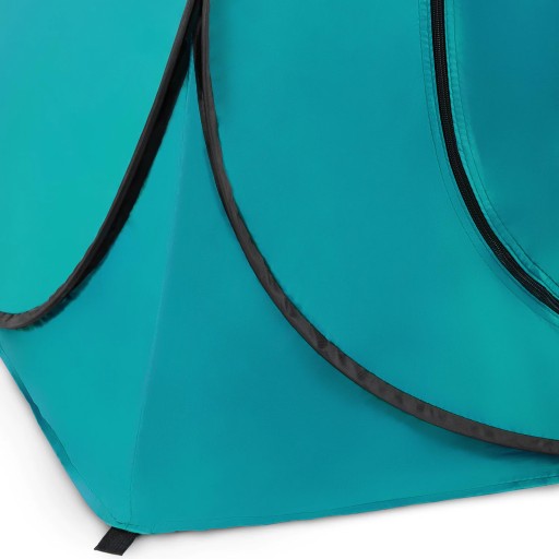 - Zamykane drzwi z opcją podwinięcia: Zamek błyskawiczny pozwala całkowicie zamknąć namiot dla zapewnienia prywatności. Możliwość podwinięcia drzwi i ich przypięcia sprawdza się w cieplejsze dni lub podczas intensywnego użytkowania, np. pod prysznicem.