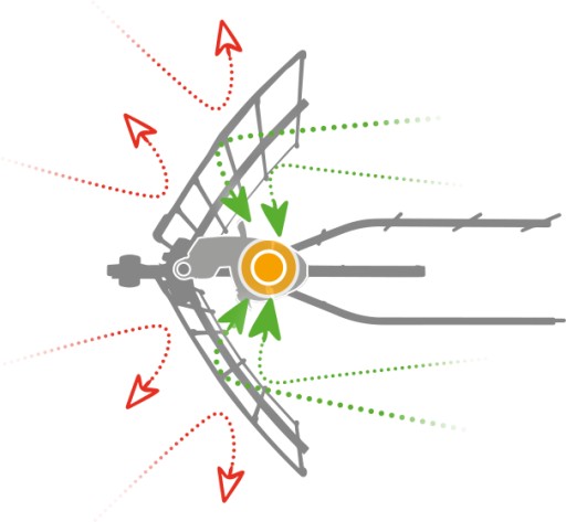 Przełomowy projekt z konstrukcją aerodynamiczną. Niepowtarzalna estetyka anteny jest odwzorowaniem naszej pasji do szczegółów.Zakrzywione reflektory optymalizują odbiór dzięki efektowi paraboli. Wypukła powierzchnia maksymalizuje osłonę dipola, podczas gdy wklęsła powierzchnia koncentruje sygnał otrzymany w dipolu.