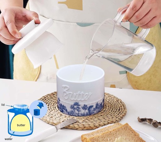 ☄️2. W przeciwieństwie do innych francuskich naczyń na masło, woda na dnie tworzy warstwę ochronną i uszczelnienie, które zapobiega przedostawaniu się powietrza do masła, dzięki czemu masło pozostaje świeże przez kilka tygodni. Dzięki temu można używać świeżego i miękkiego masła.