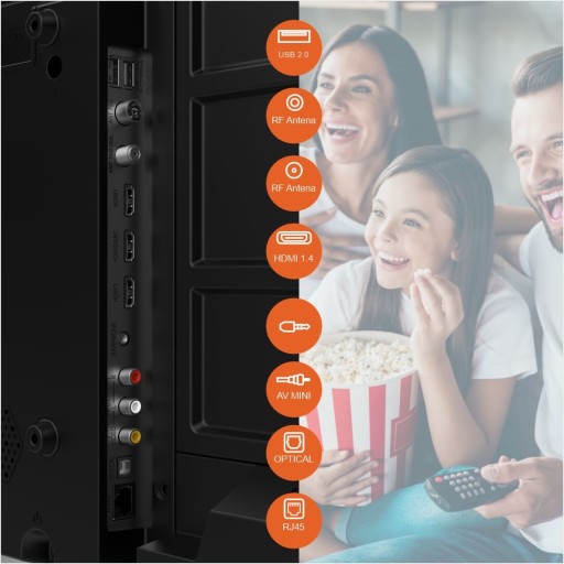- Złącza: Wejście antenowe RF - 2szt. (DVB-T/T2 + DVB-S/S2), HDMI CEC ARC - 3, USB 2.0 - 2, Mini Jack (AV in + PC Audio in L+R) -1, SPDIF Optical Out -1, Gniazdo CI+ - 1, RJ-45(LAN) - 1